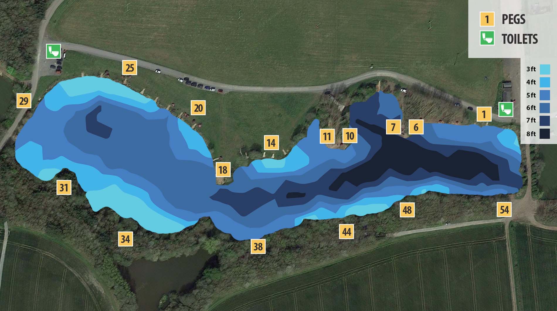- NEW Camper van Pegs: 2 pegs dedicated to fishing from your camper van. These need to be pre-booked along with your fishing
